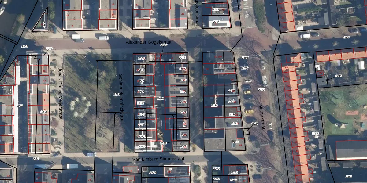 Gebruik de zoekbalk of klik op een perceel om informatie over het perceel te bekijken.