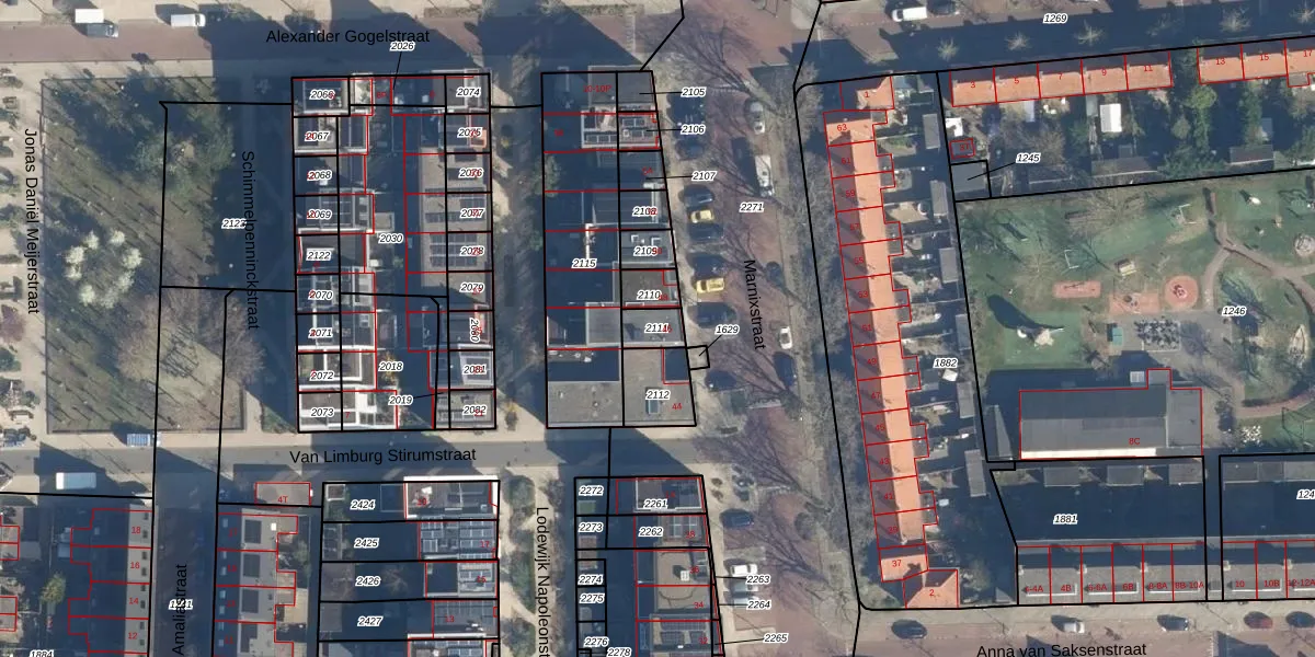 Gebruik de zoekbalk of klik op een perceel om informatie over het perceel te bekijken.