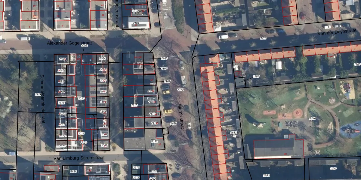 Gebruik de zoekbalk of klik op een perceel om informatie over het perceel te bekijken.
