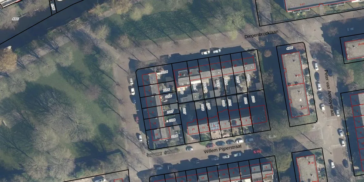 Gebruik de zoekbalk of klik op een perceel om informatie over het perceel te bekijken.