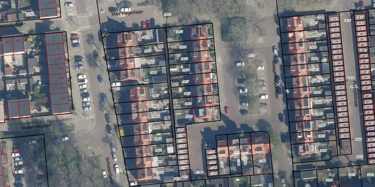 Gebruik de zoekbalk of klik op een perceel om informatie over het perceel te bekijken.