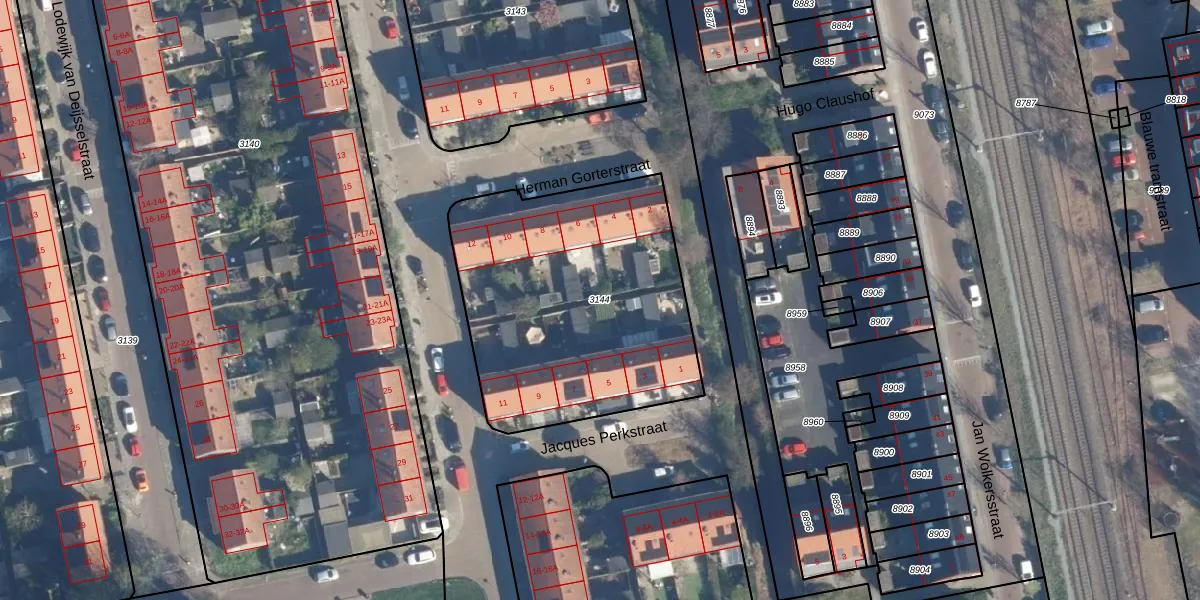 Gebruik de zoekbalk of klik op een perceel om informatie over het perceel te bekijken.