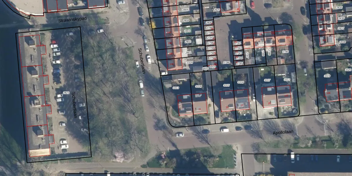 Gebruik de zoekbalk of klik op een perceel om informatie over het perceel te bekijken.