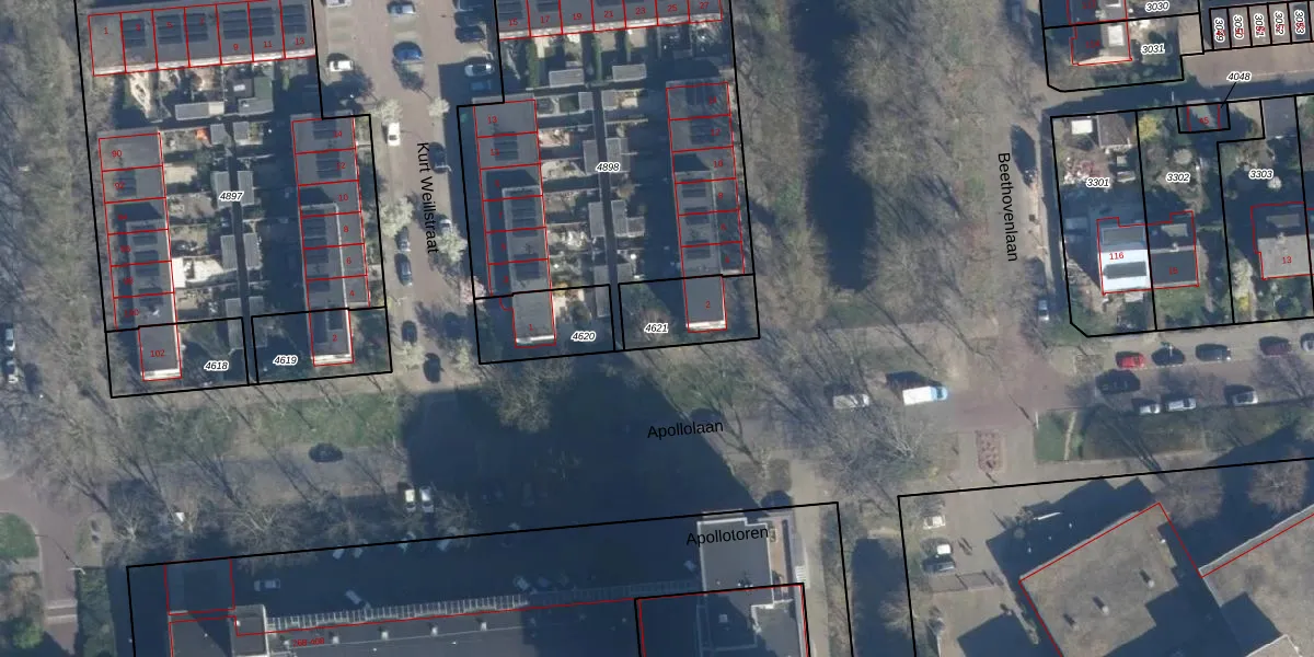 Gebruik de zoekbalk of klik op een perceel om informatie over het perceel te bekijken.