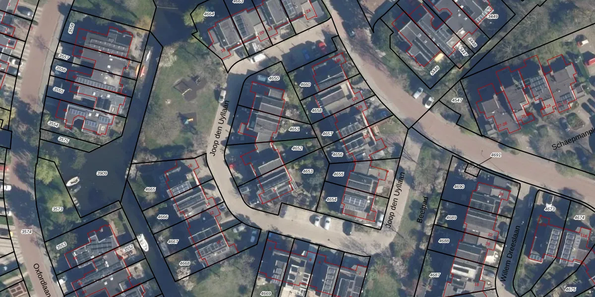 Gebruik de zoekbalk of klik op een perceel om informatie over het perceel te bekijken.
