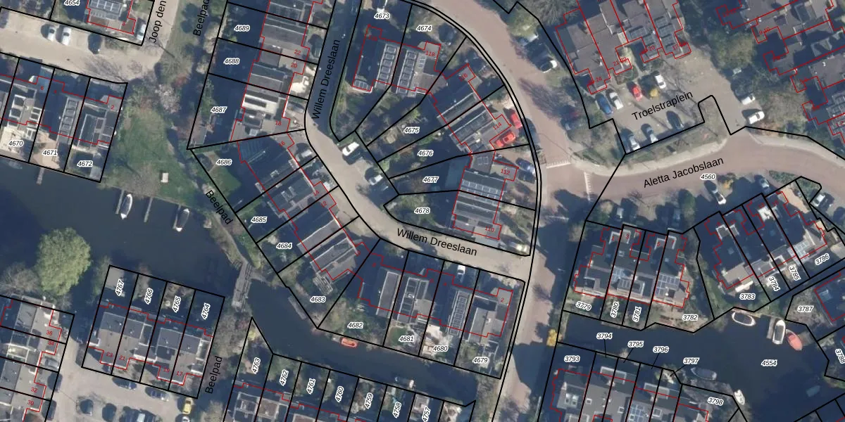 Gebruik de zoekbalk of klik op een perceel om informatie over het perceel te bekijken.