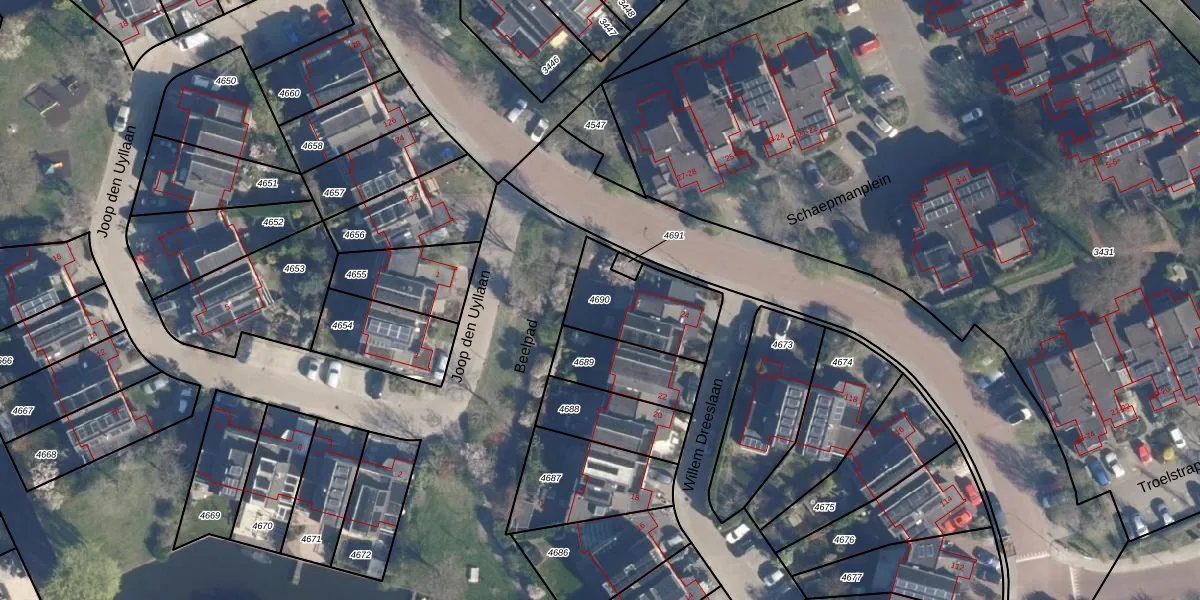 Gebruik de zoekbalk of klik op een perceel om informatie over het perceel te bekijken.