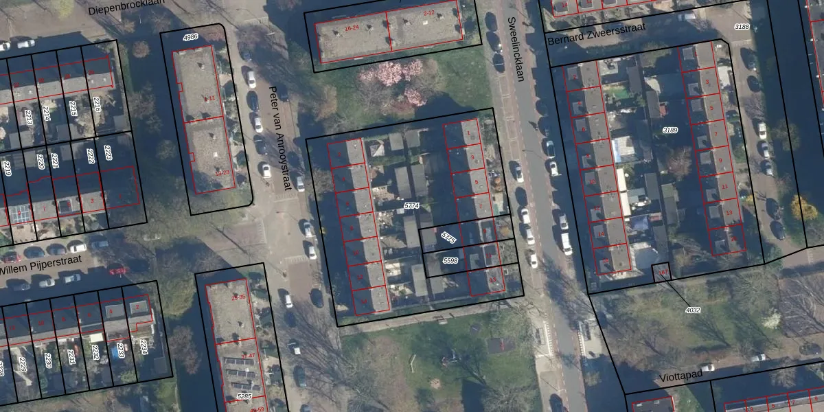 Gebruik de zoekbalk of klik op een perceel om informatie over het perceel te bekijken.