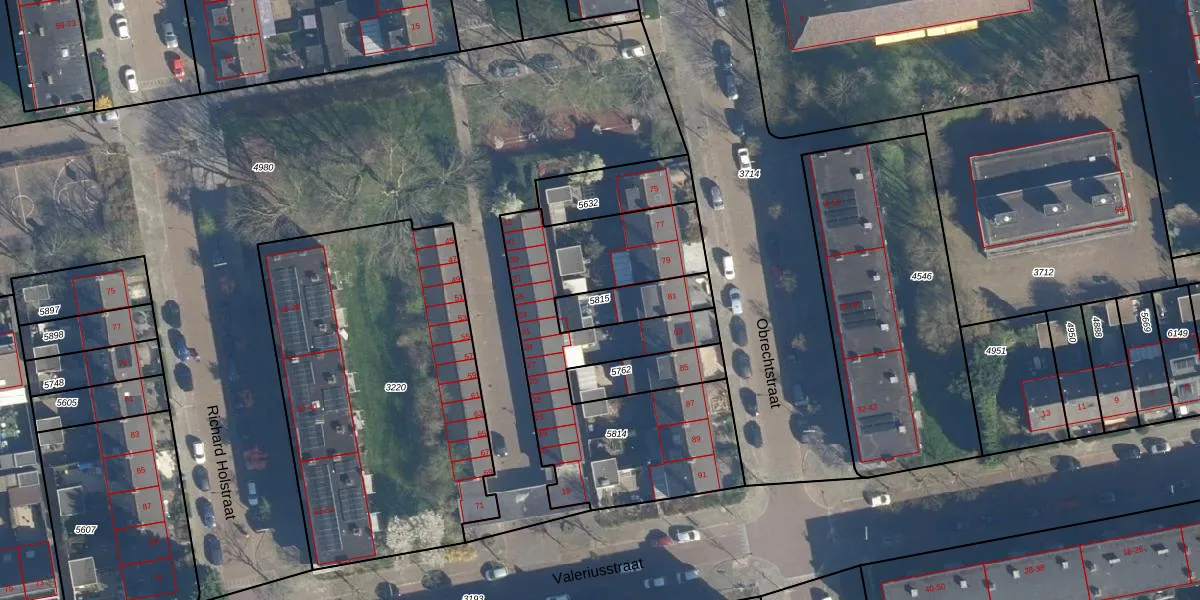 Gebruik de zoekbalk of klik op een perceel om informatie over het perceel te bekijken.