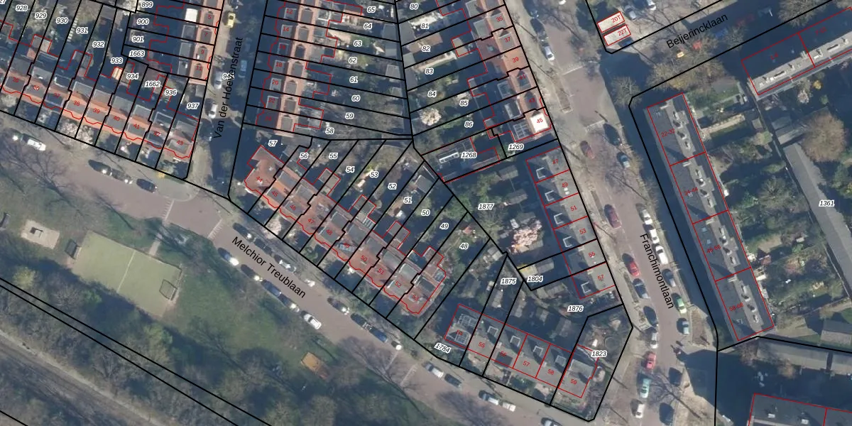 Gebruik de zoekbalk of klik op een perceel om informatie over het perceel te bekijken.
