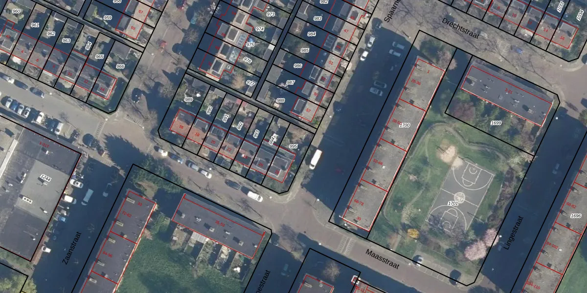 Gebruik de zoekbalk of klik op een perceel om informatie over het perceel te bekijken.
