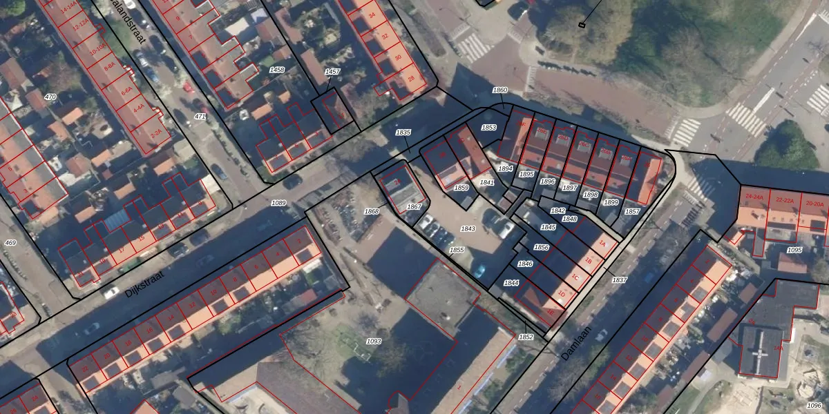 Gebruik de zoekbalk of klik op een perceel om informatie over het perceel te bekijken.