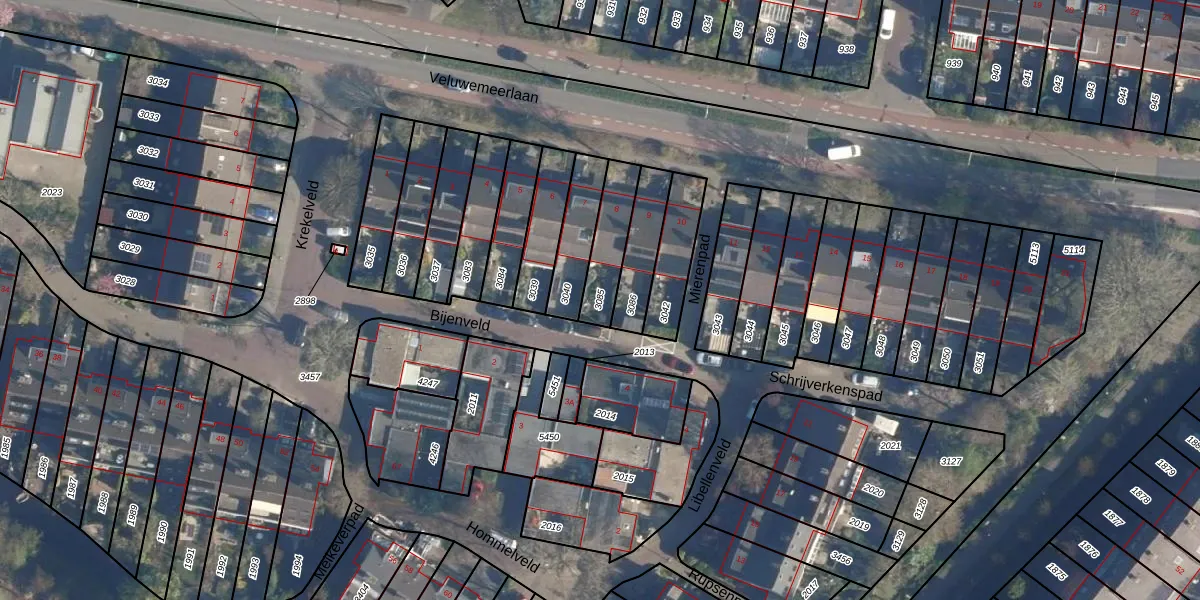 Gebruik de zoekbalk of klik op een perceel om informatie over het perceel te bekijken.