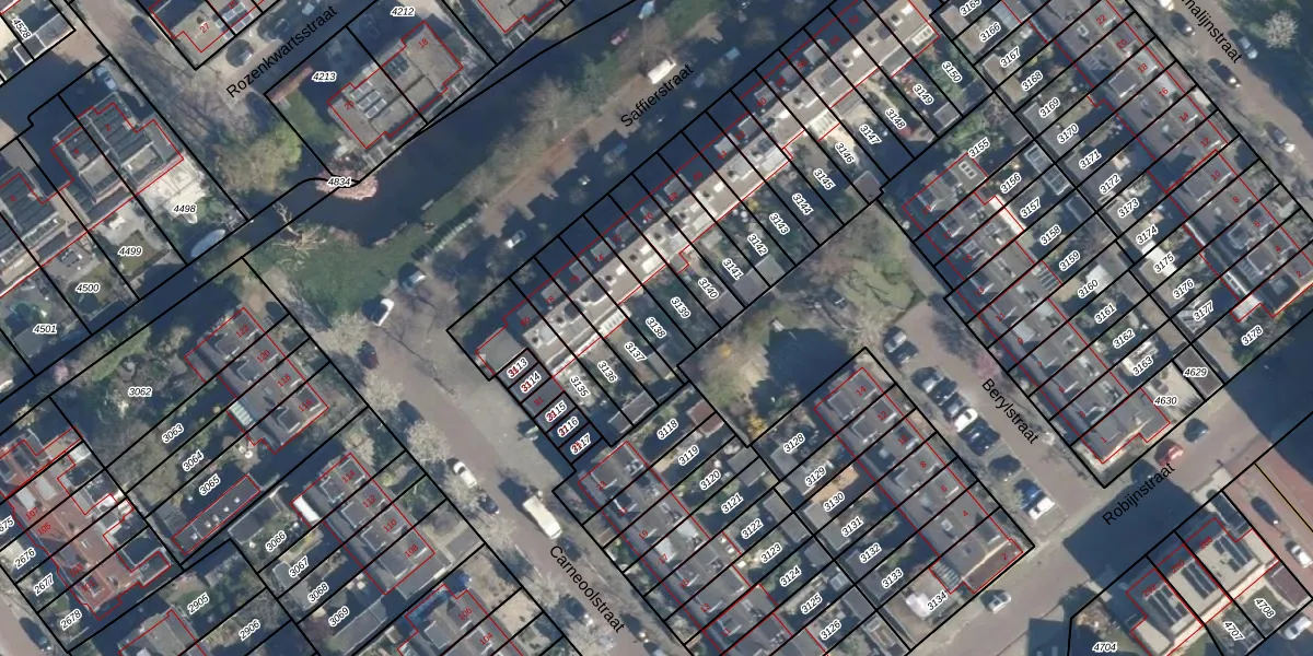 Gebruik de zoekbalk of klik op een perceel om informatie over het perceel te bekijken.