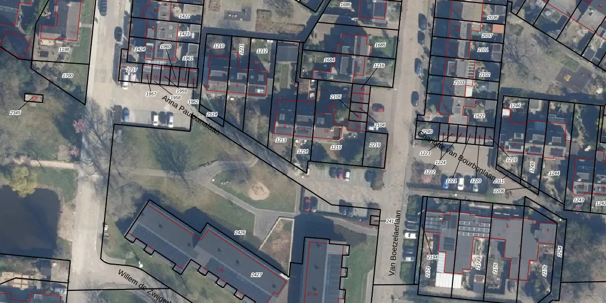 Gebruik de zoekbalk of klik op een perceel om informatie over het perceel te bekijken.