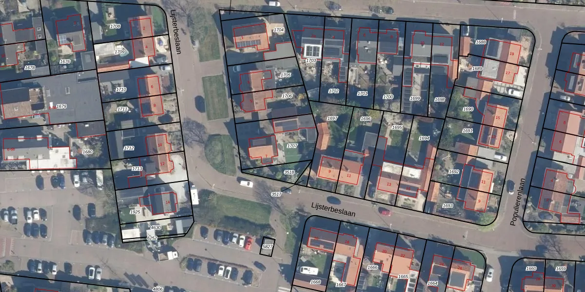 Gebruik de zoekbalk of klik op een perceel om informatie over het perceel te bekijken.