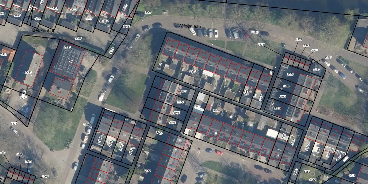 Gebruik de zoekbalk of klik op een perceel om informatie over het perceel te bekijken.