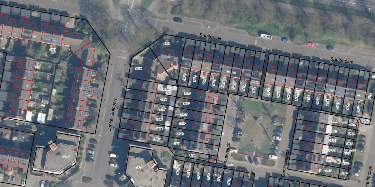 Gebruik de zoekbalk of klik op een perceel om informatie over het perceel te bekijken.
