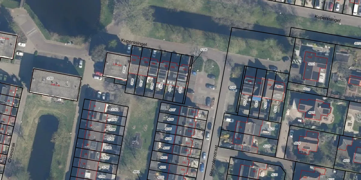 Gebruik de zoekbalk of klik op een perceel om informatie over het perceel te bekijken.