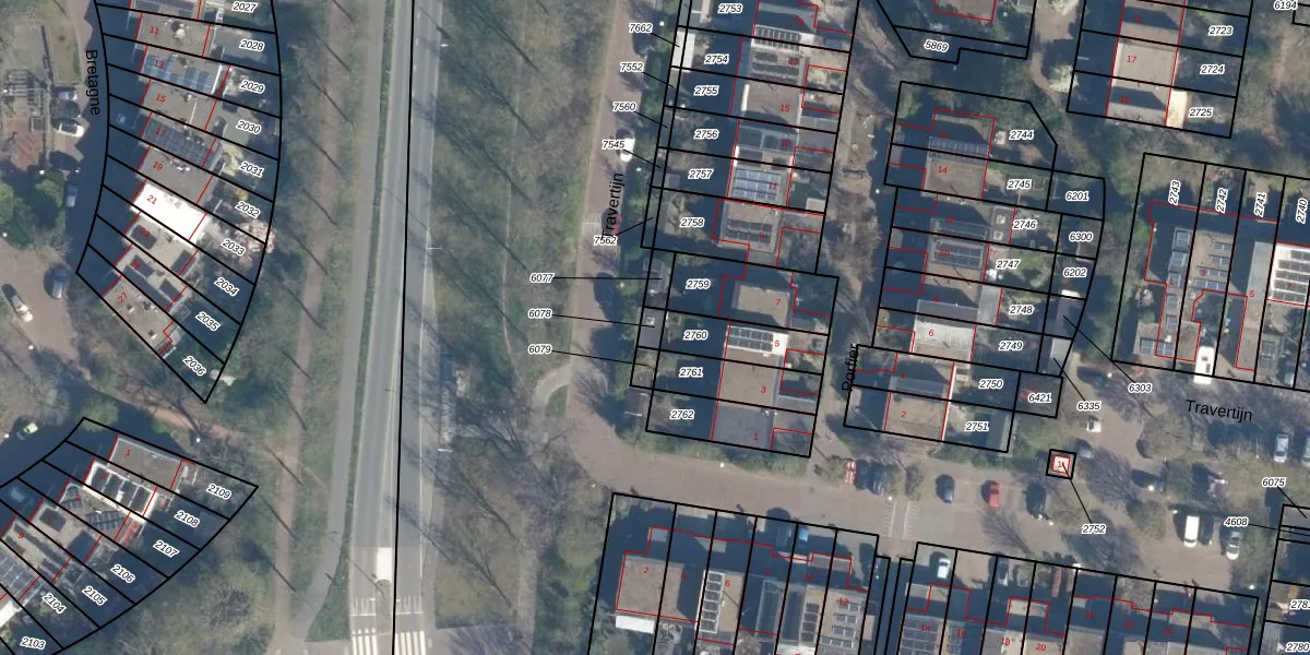 Gebruik de zoekbalk of klik op een perceel om informatie over het perceel te bekijken.