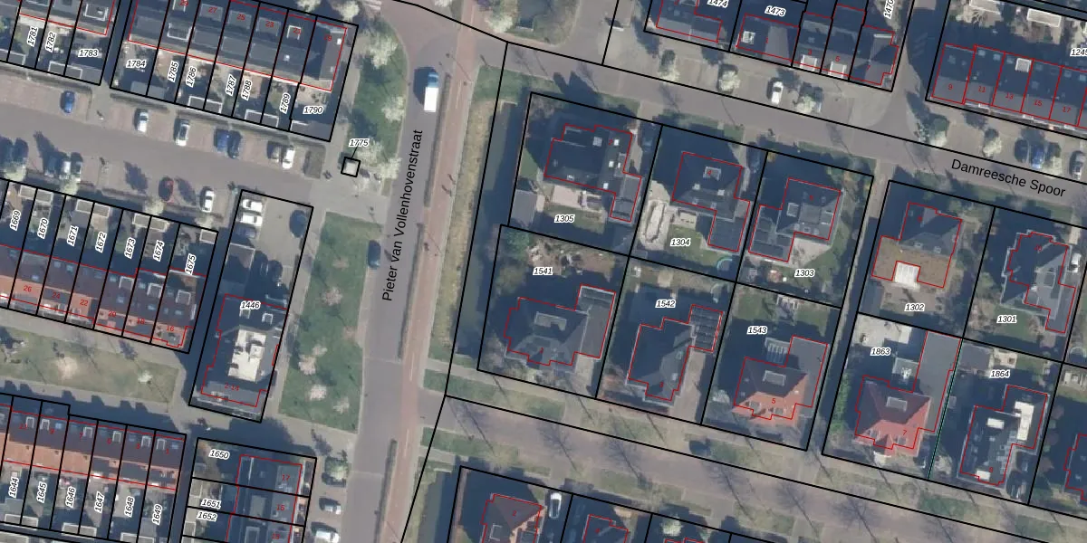 Gebruik de zoekbalk of klik op een perceel om informatie over het perceel te bekijken.