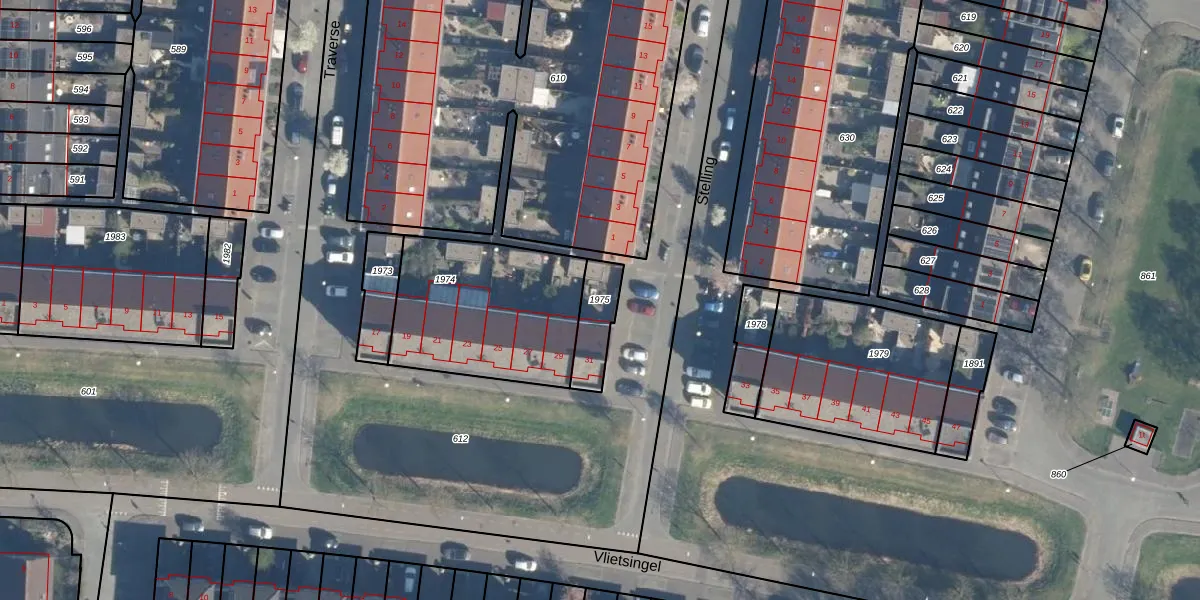 Gebruik de zoekbalk of klik op een perceel om informatie over het perceel te bekijken.