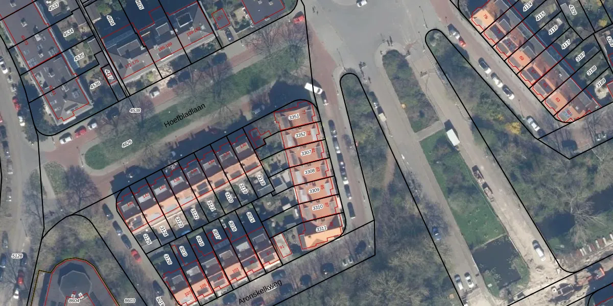 Gebruik de zoekbalk of klik op een perceel om informatie over het perceel te bekijken.