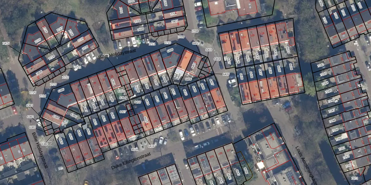 Gebruik de zoekbalk of klik op een perceel om informatie over het perceel te bekijken.