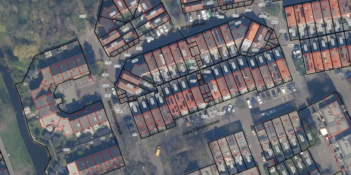 Gebruik de zoekbalk of klik op een perceel om informatie over het perceel te bekijken.