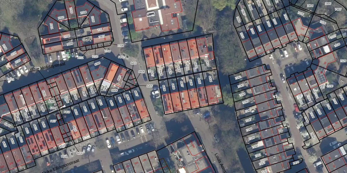 Gebruik de zoekbalk of klik op een perceel om informatie over het perceel te bekijken.