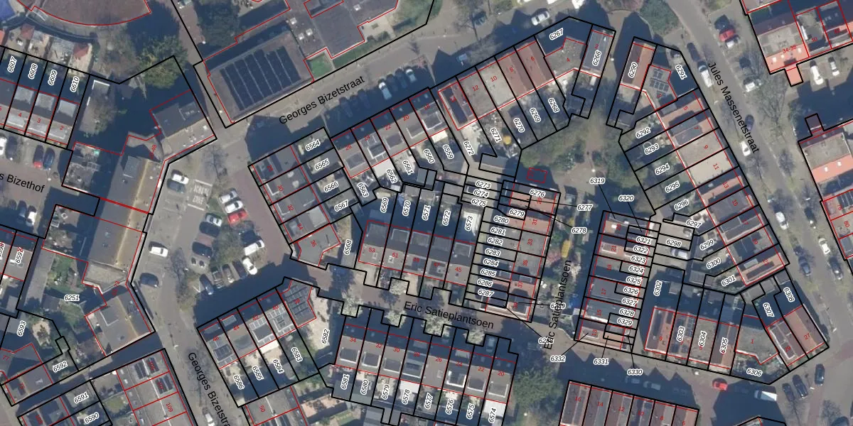 Gebruik de zoekbalk of klik op een perceel om informatie over het perceel te bekijken.