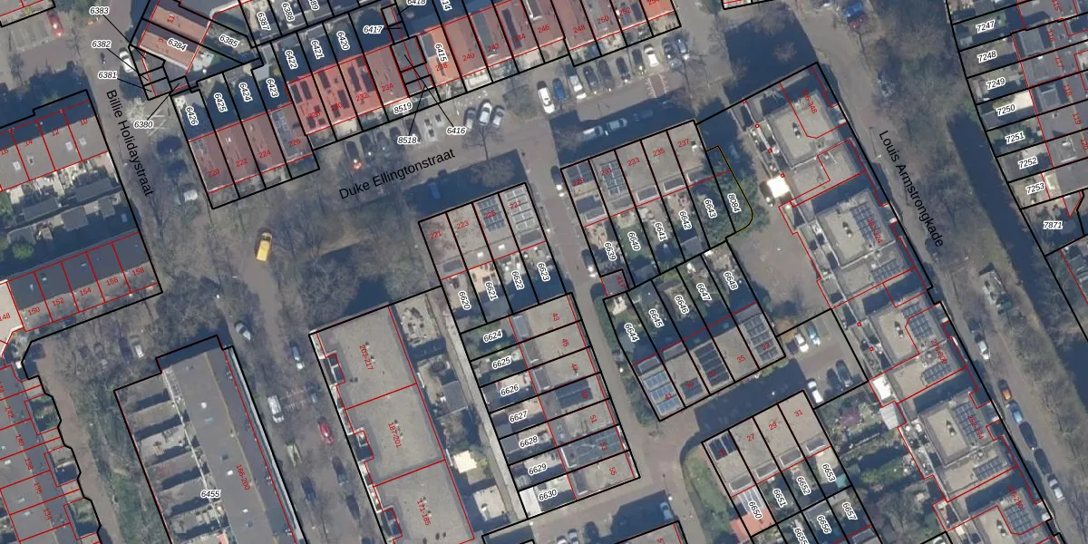 Gebruik de zoekbalk of klik op een perceel om informatie over het perceel te bekijken.