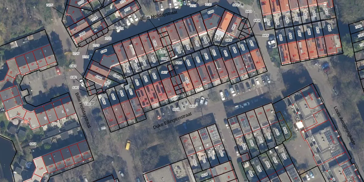 Gebruik de zoekbalk of klik op een perceel om informatie over het perceel te bekijken.