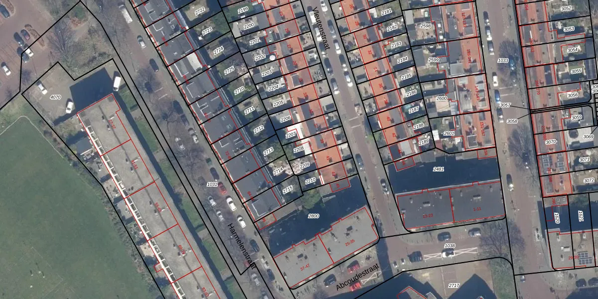 Gebruik de zoekbalk of klik op een perceel om informatie over het perceel te bekijken.