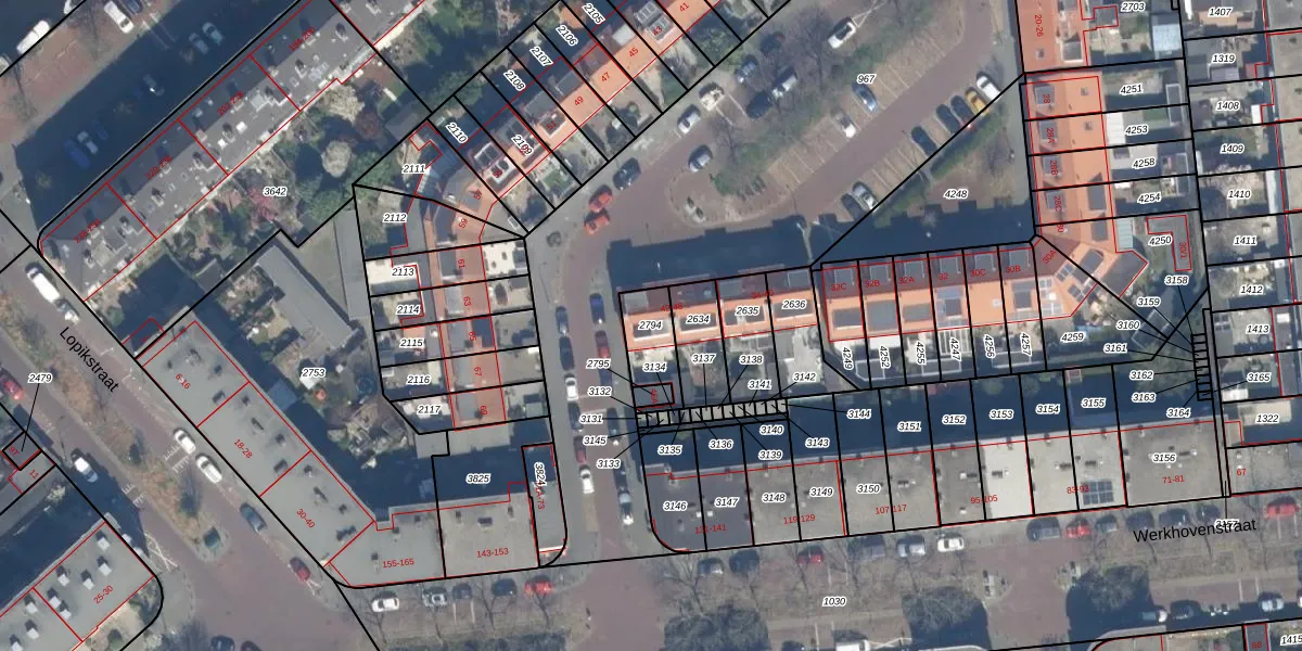 Gebruik de zoekbalk of klik op een perceel om informatie over het perceel te bekijken.