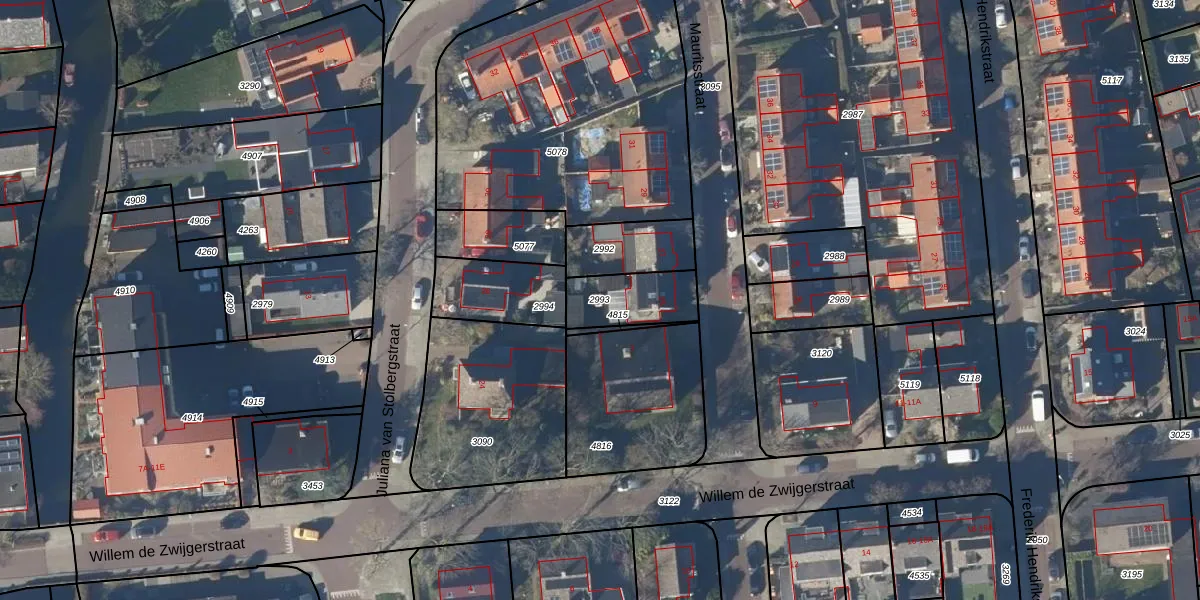 Gebruik de zoekbalk of klik op een perceel om informatie over het perceel te bekijken.