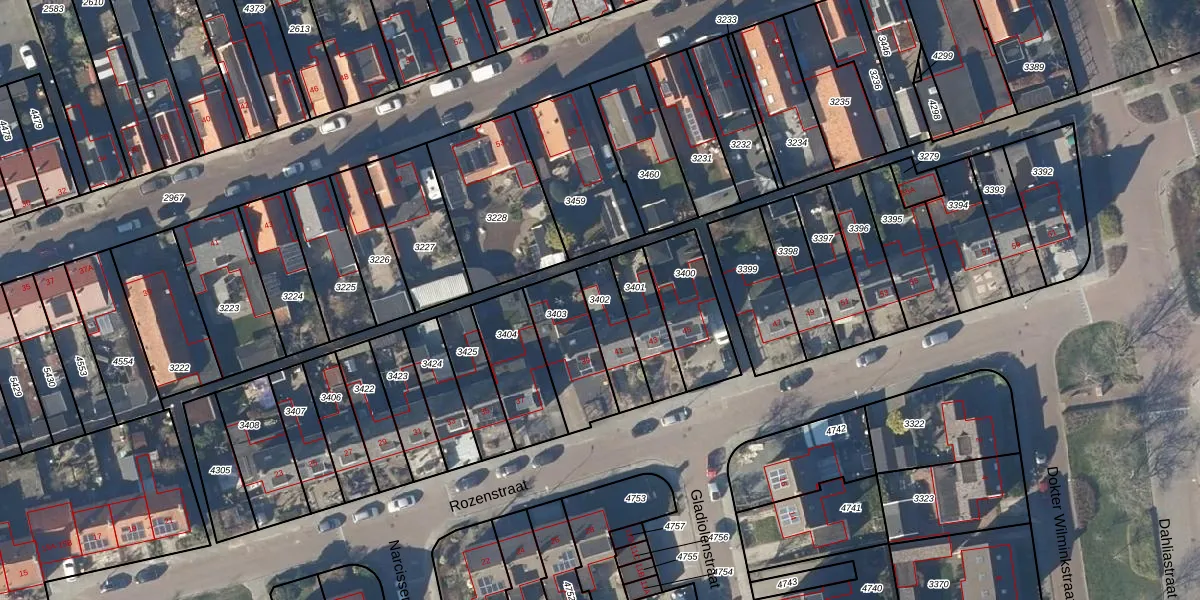 Gebruik de zoekbalk of klik op een perceel om informatie over het perceel te bekijken.