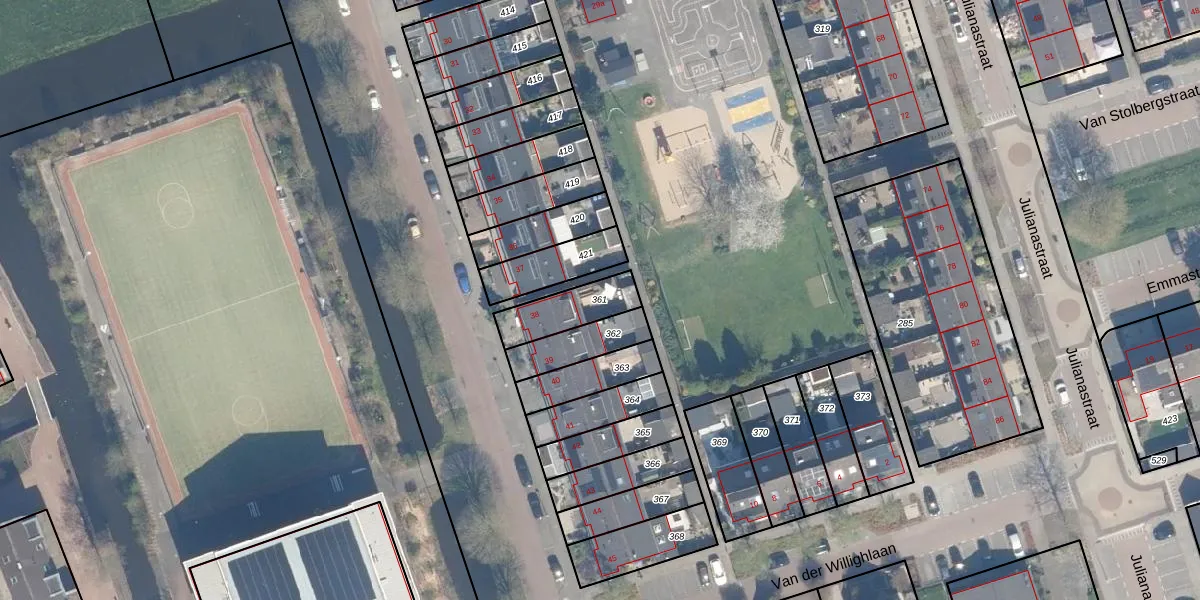 Gebruik de zoekbalk of klik op een perceel om informatie over het perceel te bekijken.