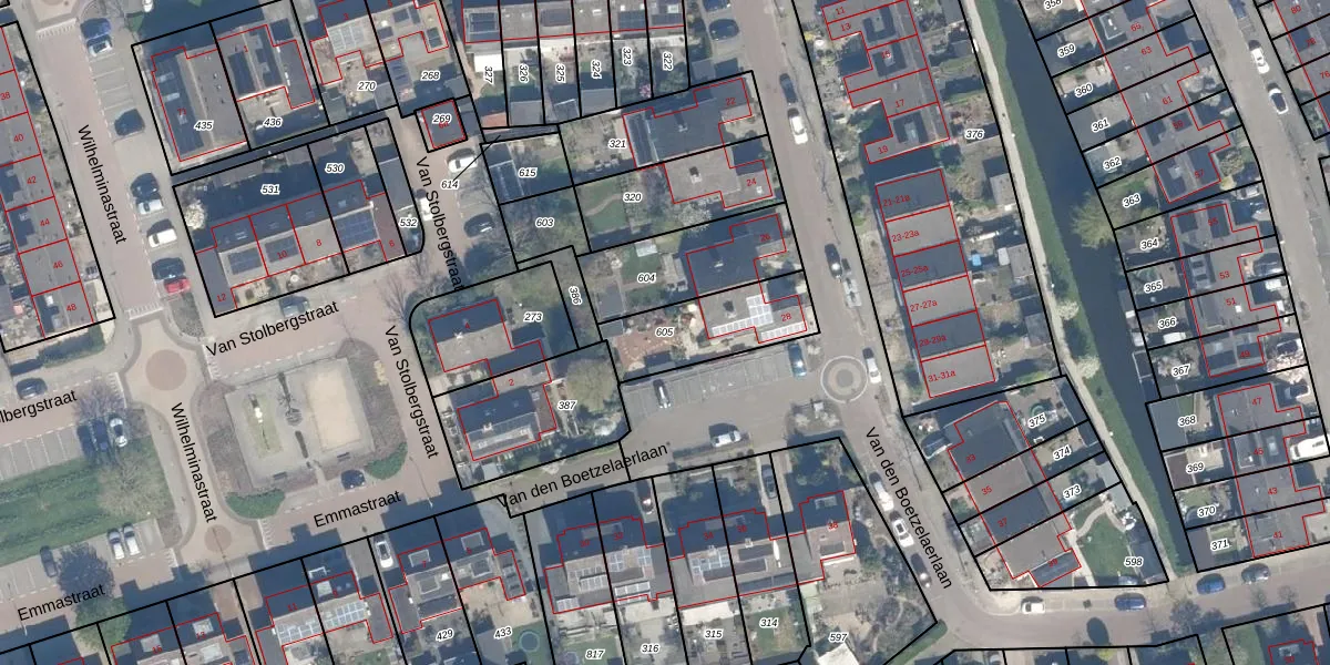Gebruik de zoekbalk of klik op een perceel om informatie over het perceel te bekijken.