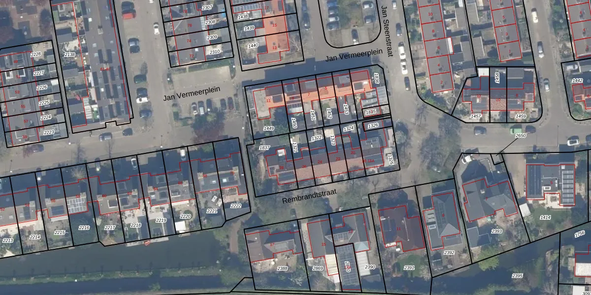 Gebruik de zoekbalk of klik op een perceel om informatie over het perceel te bekijken.
