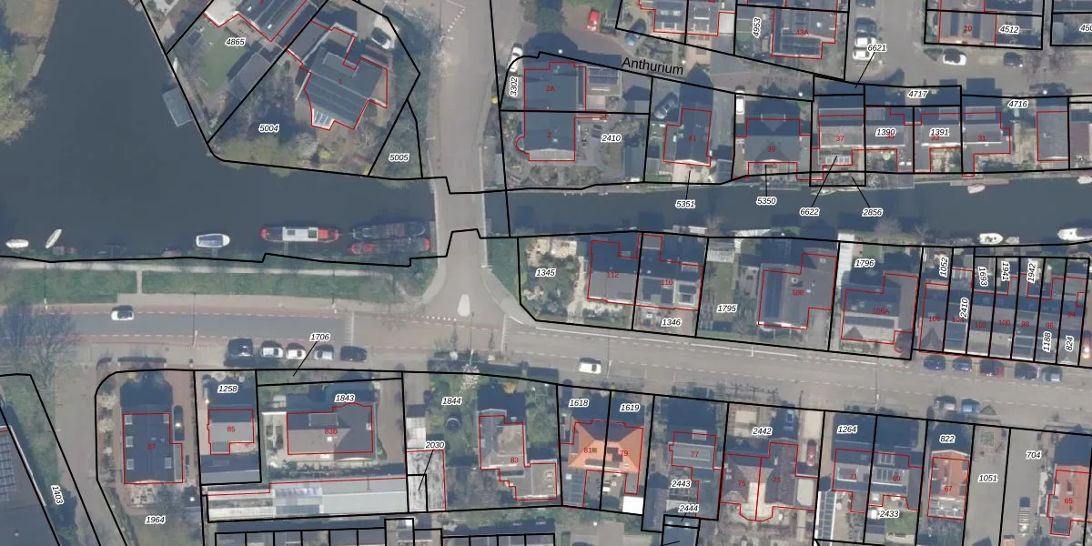 Gebruik de zoekbalk of klik op een perceel om informatie over het perceel te bekijken.