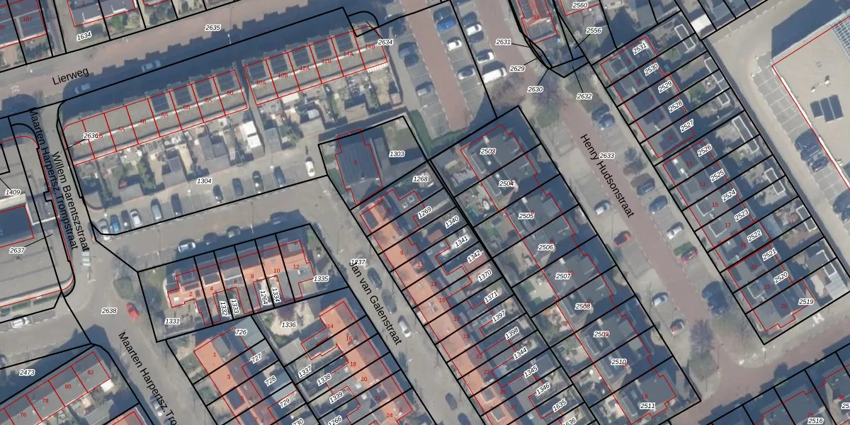 Gebruik de zoekbalk of klik op een perceel om informatie over het perceel te bekijken.