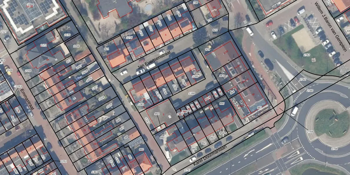 Gebruik de zoekbalk of klik op een perceel om informatie over het perceel te bekijken.