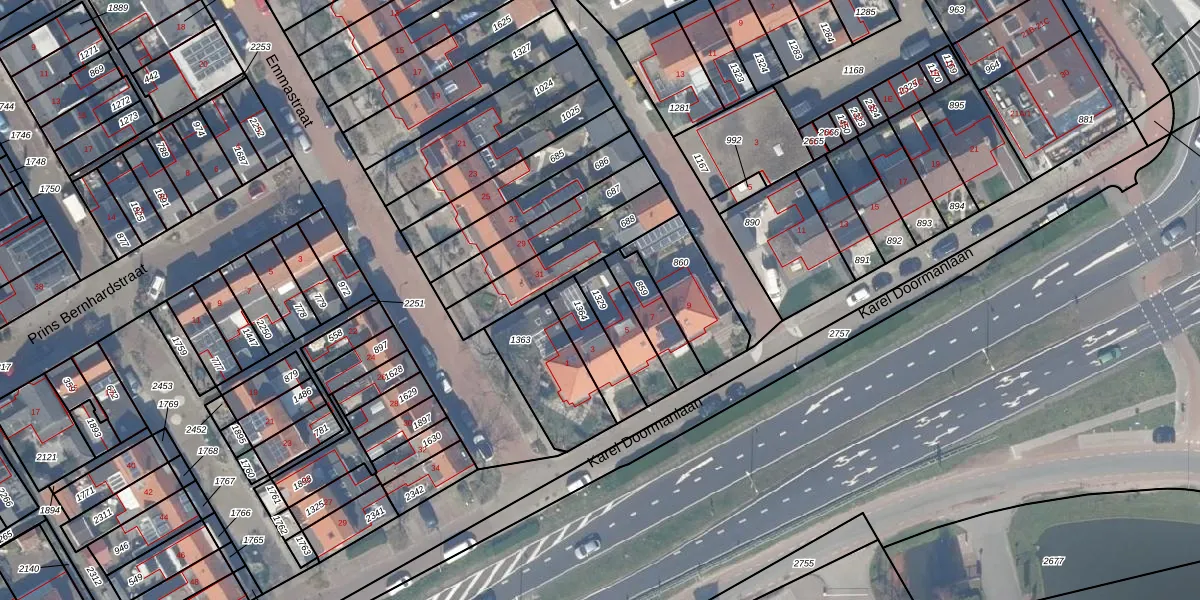 Gebruik de zoekbalk of klik op een perceel om informatie over het perceel te bekijken.