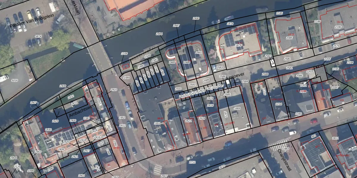 Gebruik de zoekbalk of klik op een perceel om informatie over het perceel te bekijken.