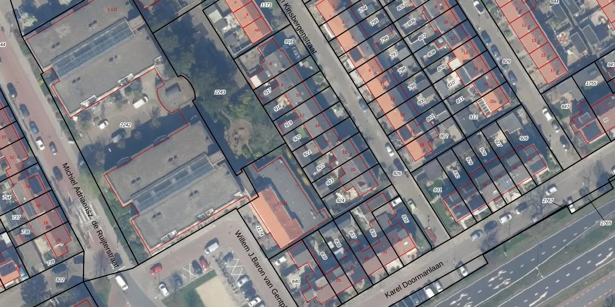 Gebruik de zoekbalk of klik op een perceel om informatie over het perceel te bekijken.