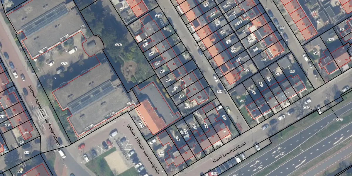 Gebruik de zoekbalk of klik op een perceel om informatie over het perceel te bekijken.