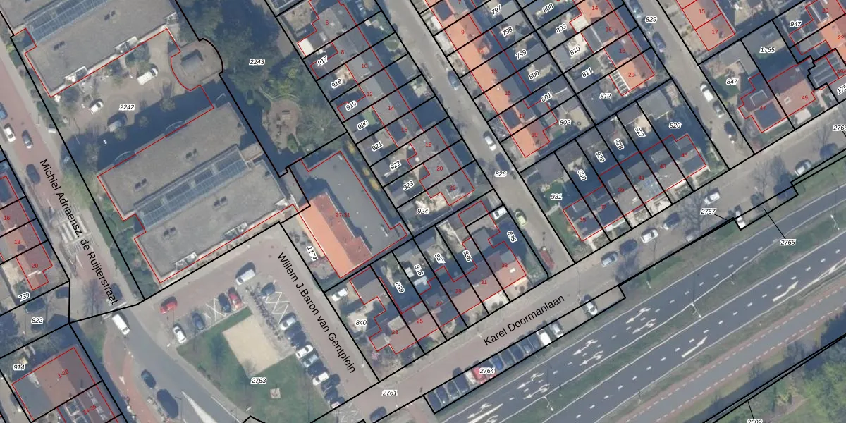 Gebruik de zoekbalk of klik op een perceel om informatie over het perceel te bekijken.