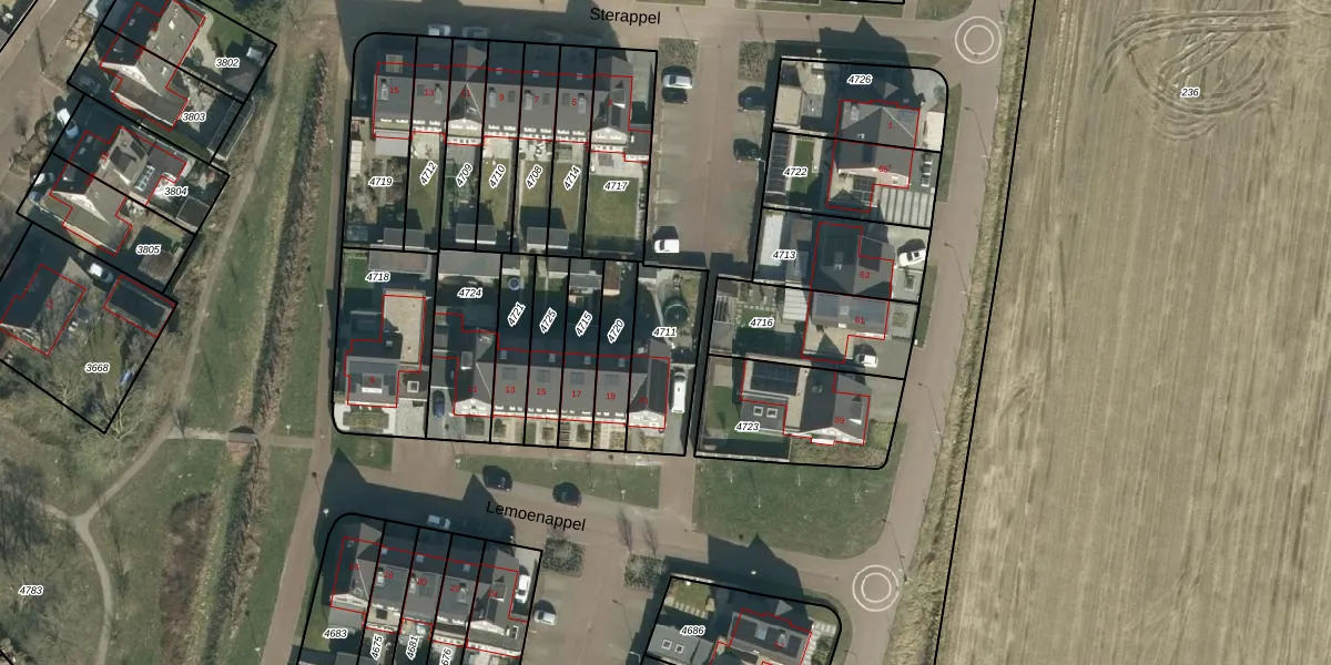 Gebruik de zoekbalk of klik op een perceel om informatie over het perceel te bekijken.