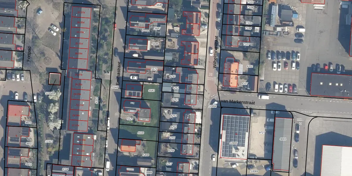 Gebruik de zoekbalk of klik op een perceel om informatie over het perceel te bekijken.